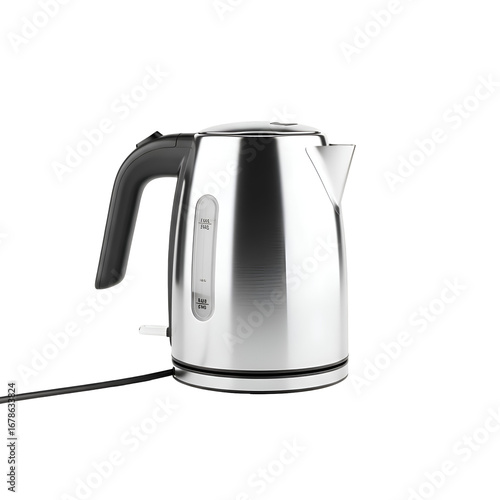 Stainless Steel Kettle Sits Elegantly on Transparent Background, Kitchen Appliance, Modern Design