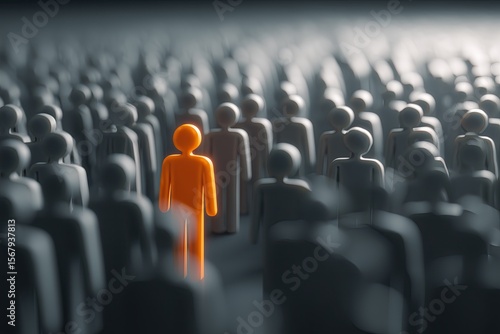 crowd, people, leader, leadership, individual, standing, out, figure, massa, anonymous, uniqueness, unique, character, grey, grey, orange, population, human, group, together, oneness, shape, membership, perspective, conceptual, idea, teamwork, success, business, marketing, society, many, difference, concept, background, following
