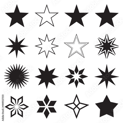 Star vector icons. Stars collection. Star icon. Stars in modern simple flat style. Black stars, vector illustration