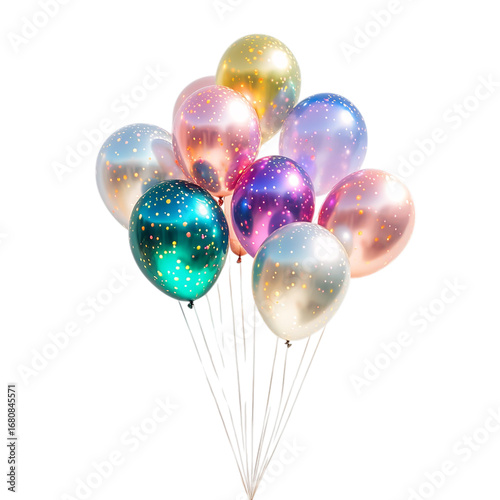 Starry Metallic Balloons PNG Transparent Clipart for Festive Celebration, Party Decor, Shiny Colorful Design Elements