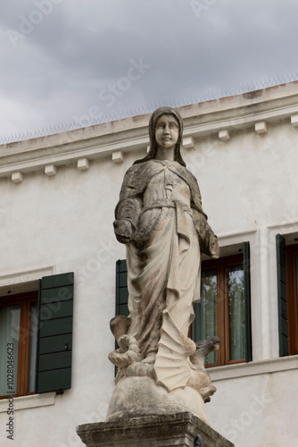 symbol, european, europa, virgin mary, the blessed virgin mary, mother, figure, outdoors, outside, art, catholicism, history, god, good, faith, conceptual, christianity, christian, open space, architecture, catholic, closeup, concrete, italian, italy, religious, sky, statue, venice, view, virgin, wall