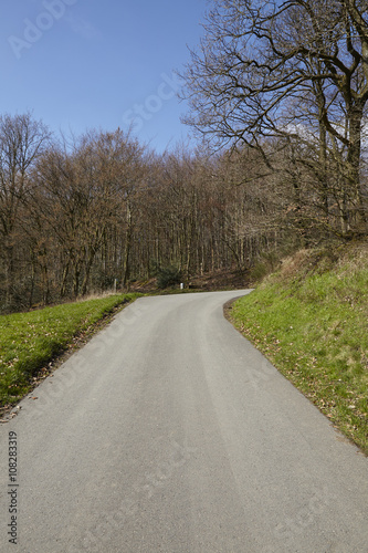 street, street, roadway, curve, grass, tree, tree, forest, heaven, blue, blue skies, sunny, way, spring, upward, hillside