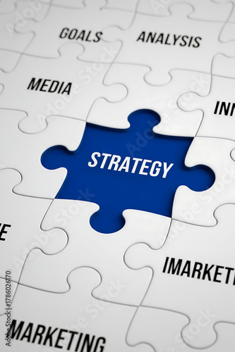 strategy, puzzle, business, concept, marketing, goal, analysis, innovation, teamwork, plan, management, solution, planning, corporate, success, word, piece, challenge, problem, solving, idea, white, blue, abstract, background, work, development, finance, media, action
