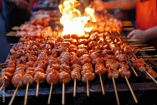 food, street, skewer, grill, meat, cook, delicious, tasty, bar-b-q, flames, market, asia, cookery, cooking, seller, prepare, picnic, summer, deliciously, favor, hot, meal, bar-b-q, grilled, pork meat, chicken, rib, stall, evening, siam, vietnam, indonesia, malaysia, grilling