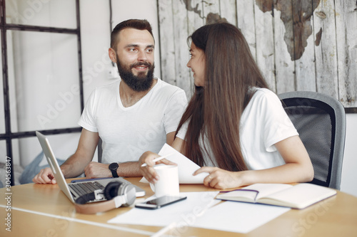 Students create a new project. Couple working in a office