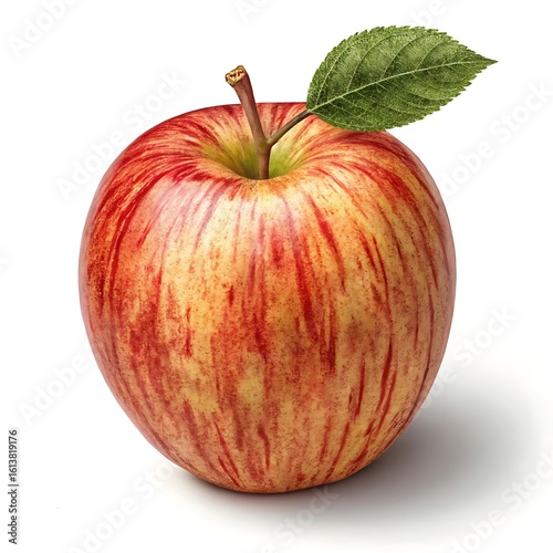 Studio Shot of a Red and Yellow Striped Apple with a Leaf