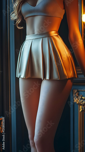 Stunning 3D Illustration of a Woman in a Pleated Mini Skirt and Crop Top