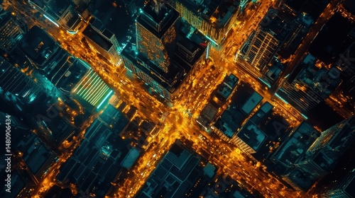 Stunning Aerial View of Vibrant Cityscape at Twilight, High-Angle Perspective, Urban Lights and Skyline, Modern Metropolis at Dusk.