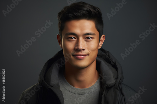 asian, photogenic, man, grey, background, portrait, model, fashion, style, trendy, cool, confident, elegant, chic, modern, charismatic, sophisticated, masculine, groomed, stylish, posing, attractive, graceful, youthful, smiling, posh, grey background, expressive, alluring, composed, sharp, sleek, monochrome, captivating, positive