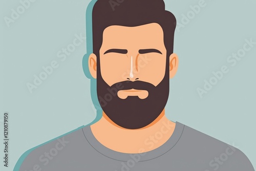Stylish Bearded Man Portrait Illustration featuring Minimalist Design and Calm Background for Creative Projects and Marketing Use