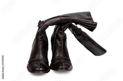 Stylish brown leather women's boot isolated on white
