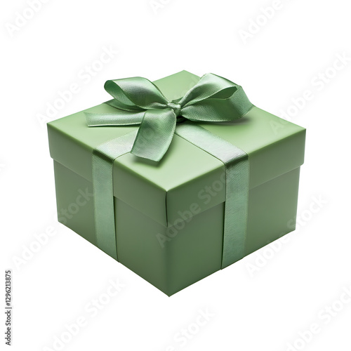 Stylish Mint Green Gift Box with Shiny Silver Bow on transparent background