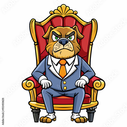 Stylized Vector Cute Angry Dog in a Suit Sitting on a Fancy Chair - Hand-Drawn Isolated art vector illustration