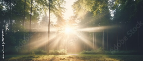 Sun Shines Through Trees in Forest, Creating a Scenic Landscape