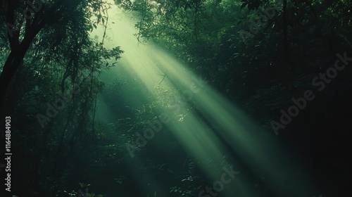 sunbeam, sunlight, forest, canopy, tree, leaf, green, lush, nature, wood, timberland, jungle, rainforest, light, ray, beam, shadow, dark, mystical, magical, mysterious, serene, tranquil, peaceful, calm, quiet, atmosphere, ambience, mood, environment, ecology, biodiversity, ecosystem, vibrant, colours, shade, depth, texture, pattern, contrast, photo, image, picture