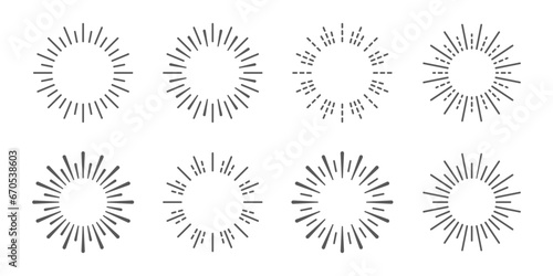 Sunburst set design. Sunbeam collection. sun rays linear. vector stock