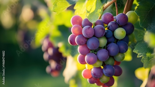 Sun-Kissed Grapes on the Vine Ready for Harvest in Vineyard at Sunset