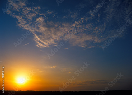 sunset, sky, sun, nature, background, copy space, sunrise, cloud, sunlight, blue, orange, yellow, red, cloudscape, dark, dusk, landscape, gold, outdoors, twilight