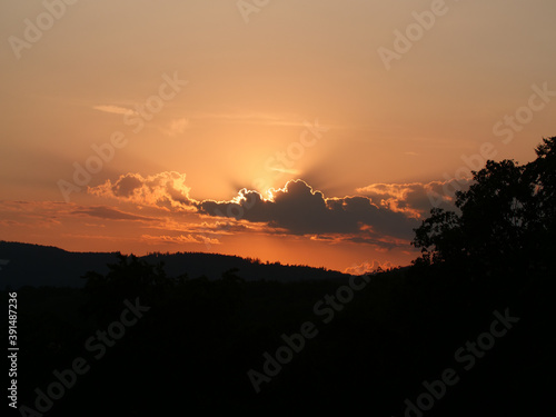 Sunset Hochtaunus Hessen, clouds hide the sun in the dusk.