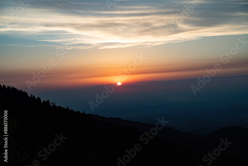 sunset, sky, sun, sunrise, nature, cloud, landscape, mountain, orange, dusk, evening, mountain, cloud, morning, dawn, beauty, sunlight, horizon, beautiful, summer, silhouette, light, travel, colours