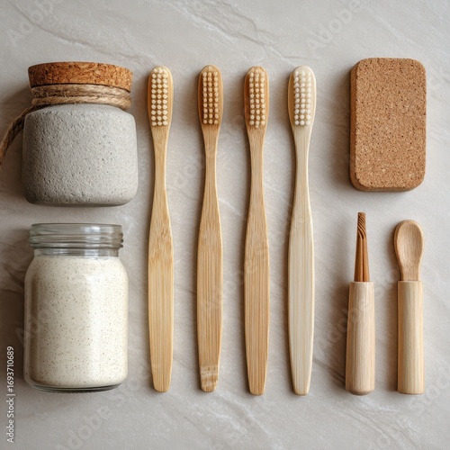bamboo, toothbrush, sustainable, environmentally friendly, natural, cork, sponge, jar, glasses, container, grey, beige, marble, kitchen, bathroom, hygiene, recyclable, accessory, product, organic, beauty, home, lifestyle, modern, minimalist, design, cleanliness, health, beauty product, eco, home decor, beauty supply, spa