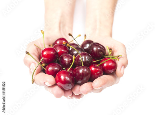 Sweet cherries in the hands of european girls