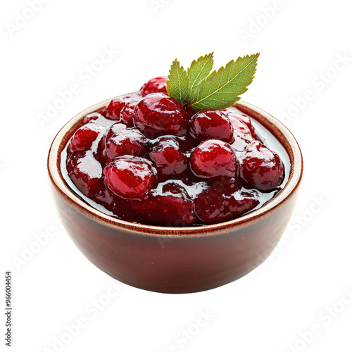 Sweet Cranberry Sauce in Bowl with Green Leaf - Thanksgiving Dinner Side Dish.