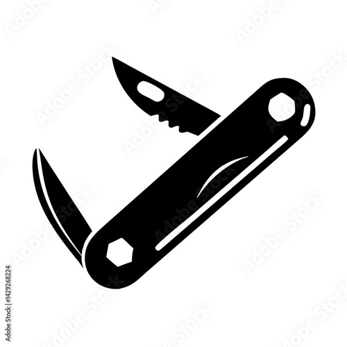 swiss knife, simple, outline, illustration, isolated, object, vector, design, graphic, symbol, flat, signs, icon, logotype, signs, silhouette, black-and-white, shadow, shape, pictogram, editable, clip art