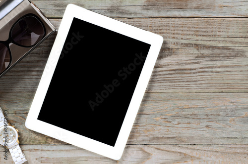 tablet, computer, desk, table, top, office, business, digital, screen, desktop, white, background, wooden, blank, laptop, communication, pad, display, device, view, information technology, of, technology, cyberspace, mechanical, watch, time, note, board, old, space, for, text, touch, electronic, wireless, modern, touch screen, 1, object, contraption, goggles, sunglasses, case