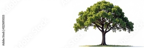 Tall tree with branches on white background, greenery, tree branches