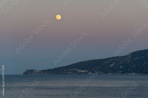 taly Sicily Aeolian Islands, Salina Island, full moon on the sea on the island of Lipari