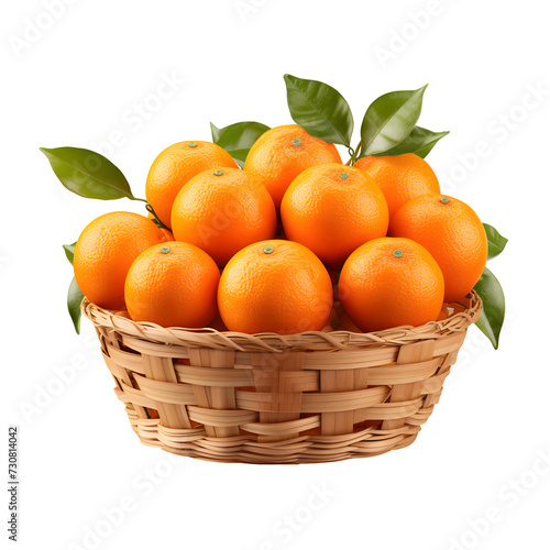 Tangerinea fruits or Santang in traditional bamboo basket. Oranges on transparent background.