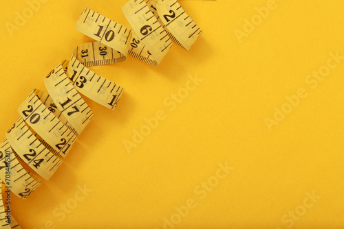 tape measure for obese people on a yellow background soft focus
