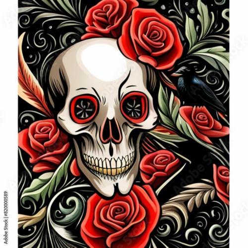 skull, vector, tattoo, illustration, pattern, halloween, art, design, flower, head, mask, cartoon, symbol, face, colours, seamless, evil, horror, animal, drawing, black, devil, death, monster, rose