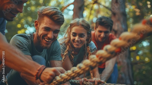 Teamwork and collaboration during a corporate retreat, building bonds through problem-solving activities