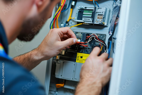 technician, control panel, wiring, connection, facility, maintenance, equipment, circuit board, tool, technology, repair, system, troubleshooting, cable, electronic, machinery, installation, safety, professional, industry, diagnostic, precision, organisation, servicing, infrastructure, schematic, electrical engineering, measurement, quality control, power supply, efficiency