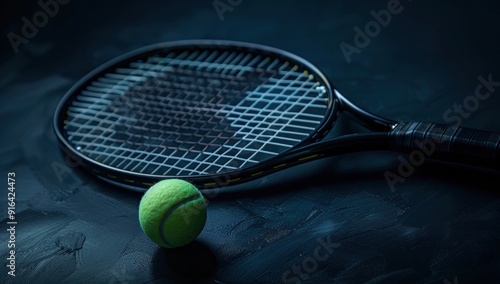 tennis, racket, ball, sport, sport, game, dark, surface, black, green, yellow, court, match, athlete, athletic, competition, victory, play, player, equipment, racket, ball, indoor, professional, amateur, hobby, fun, exercise, fitness, practice, team, single, double, tournament, grand, slam, grass, clay