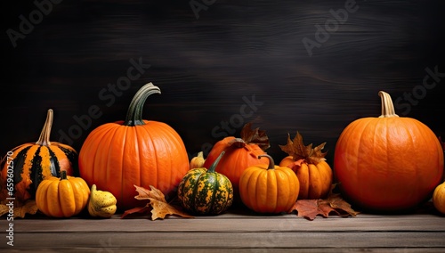 thanksgiving pumpkins on dark background Generative AI