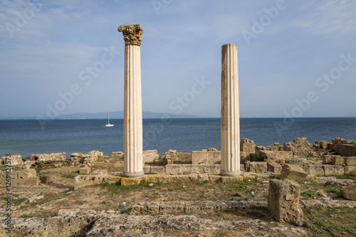 The archaeological site of Tharros in Cabras in Europe, Italy, Sardinia, Cabras, in summer, on a sunny day.