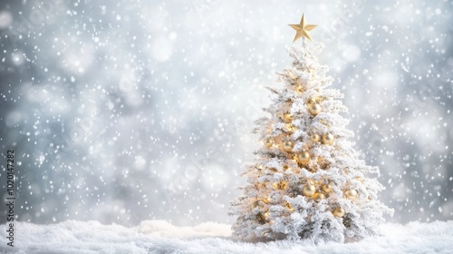 christmas, tree, snow, holiday, winter, decoration, star, gold, ornament, festive, celebration, nature, scene, beauty, sparkle, frost, atmosphere, background, warmth, joy, seasonal, tradition, cheer, magical, serene, peaceful, pine, light, glow, calmness, wonder