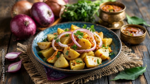 The national cuisine of Bangladesh. Alu piazer chorchori - Potatoes with onions. "Alu piaser chorchori" is a Bangladeshi dish, which means "potatoes with onions".