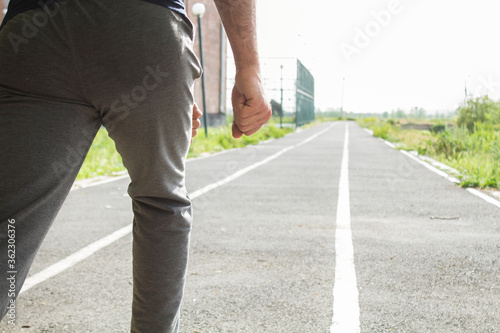 fitness, jogging, athletic, outside, healthy, ready, adult, sport, athlete, preparation, competition, outdoors, man, male, people, activewear, concentration, 1, race, sprinter, race track, track, runner, event, stadium, speed, training, run, exercise, line, young, competitive, person, sprinting, lifestyle, start, block