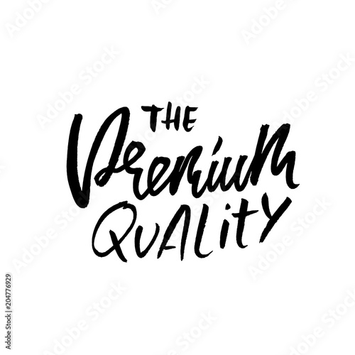 The premium quality. Ink handwritten lettering. Modern dry brush calligraphy. Typography poster design. Vector illustration.