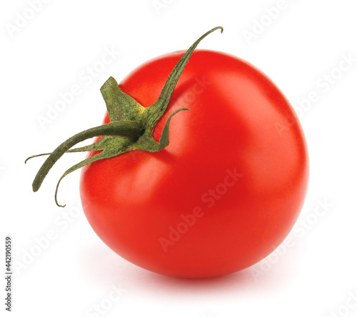 The ripe red tomato is isolated on a white background. Full clipping path.