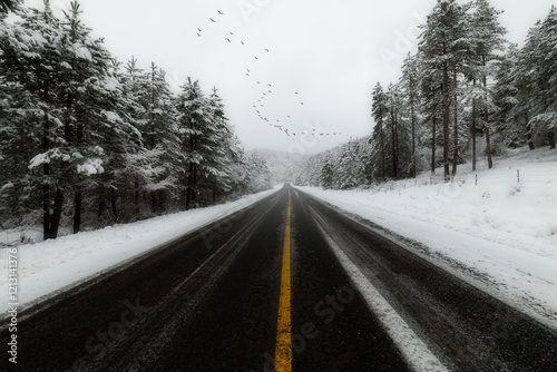 winter, snow, road, cold, tree, forest, landscape, ice, nature, tree, frost, white, sky, glacé, snowy, park, rural, season, highway, country, driving, car, outdoors, asphalt, travel, way, mountain, street, transportation, horizon
