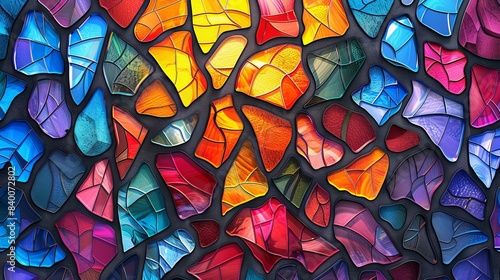 The seamless pattern background is made up of vibrant colored stained glass windows