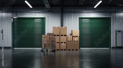 storage, garage, box, cart, logistic, warehouse, organisation, interior, facility, commerce, container, minimalism, green, clean, modern, empty, door, supply, delivery, packing, space, industrial, design, architecture, equipment, shelving, item, security, transport, inventory