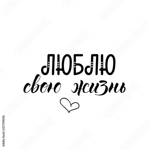 the text in Russian: I love my life. Lettering. quote to design greeting card, poster, banner, t-shirt