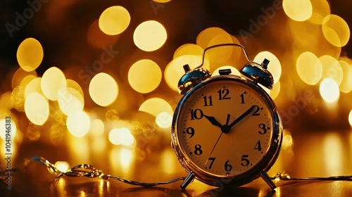 The Timeless Elegance of an Alarm Clock Glowing Amidst Soft Golden Lights