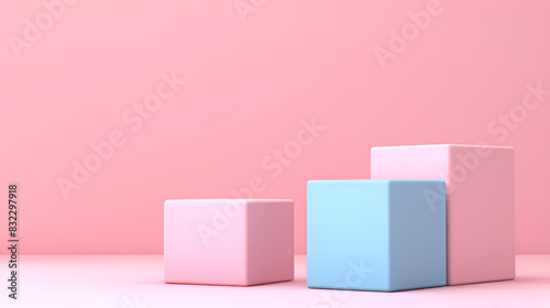 There is a podium for awards made up of three square shapes in different sizes, Minimal scene with podium and abstract background Blue pastel colors scene,An award podium made from
